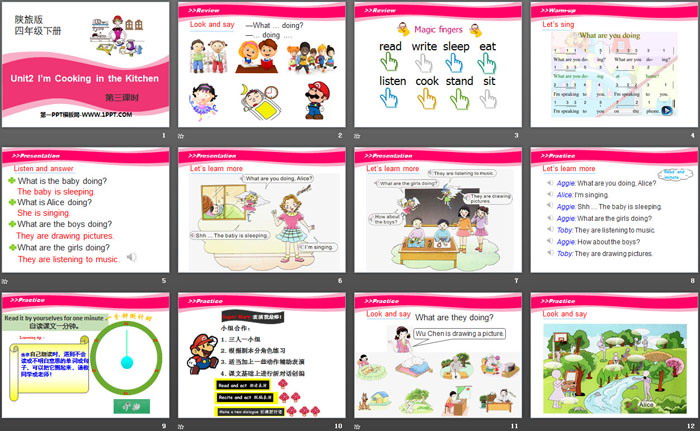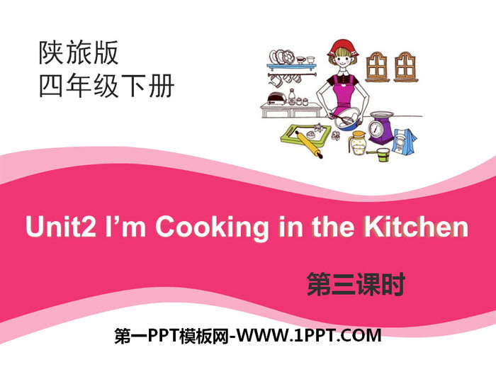 关键词:陕旅版四年级下册英语PPT课件免费下载,《I'm Cooking in the Kitchen》PPT下载,.PPT格式;