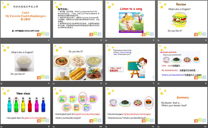 《My Favorite Food Is Hamburgers》PPT,第二部分内容:Review