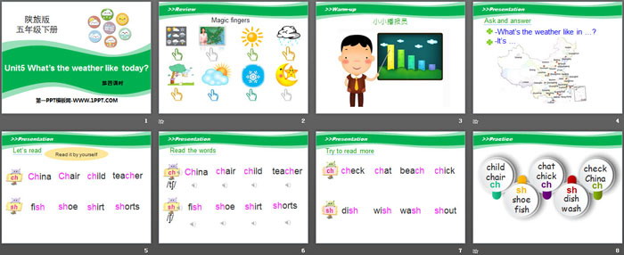关键词:陕旅版五年级下册英语PPT课件免费下载,《What's the Weather like Today?》PPT下载,.PPT格式;