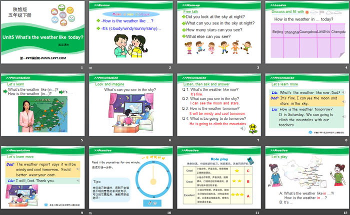 关键词:陕旅版五年级下册英语PPT课件免费下载,《What's the Weather like Today?》PPT下载,.PPT格式;