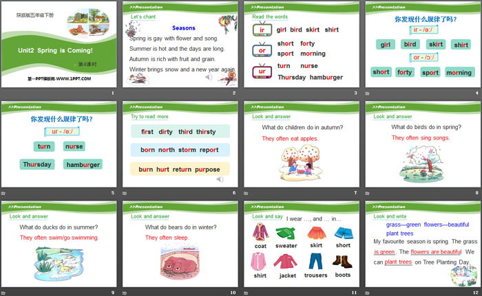 关键词:陕旅版五年级下册英语PPT课件免费下载,《Spring Is Coming》PPT下载,.PPT格式;