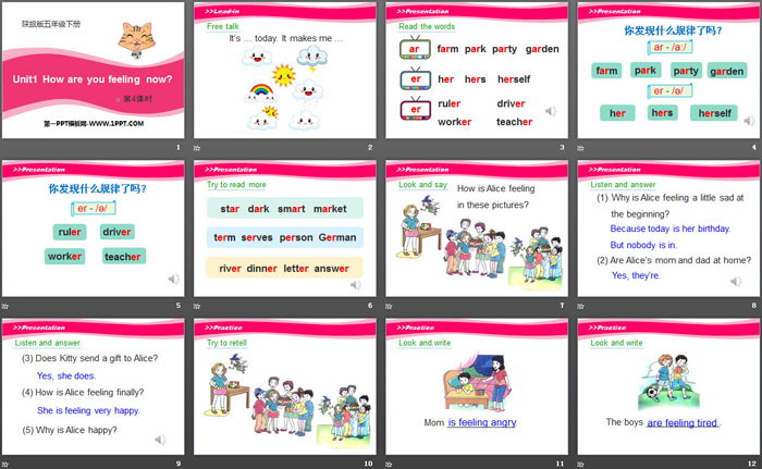 关键词:陕旅版五年级下册英语PPT课件免费下载,《How Are You Feeling Now》PPT下载,.PPT格式;