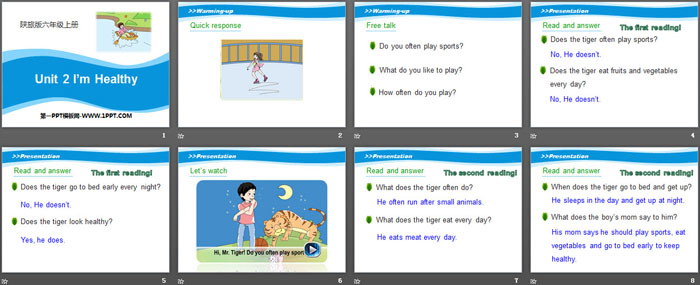 关键词:陕旅版六年级上册英语PPT课件免费下载,《I'm Healthy》PPT下载,.PPT格式;