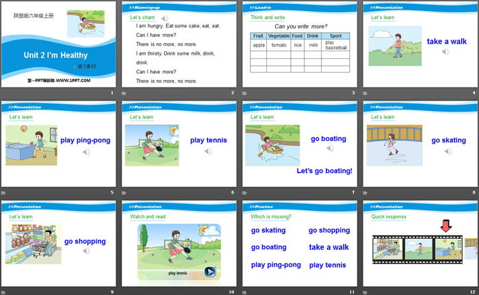关键词:陕旅版六年级上册英语PPT课件免费下载,《I'm Healthy》PPT下载,.PPT格式;