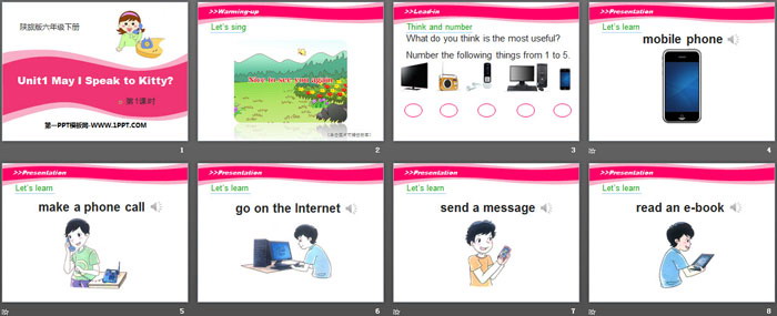 关键词:陕旅版六年级下册英语PPT课件免费下载,《May I Speak to Kitty?》PPT下载,.PPT格式;