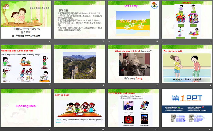关键词:陕旅版六年级上册英语PPT课件免费下载,《New Year's Party》PPT下载,.PPT格式;