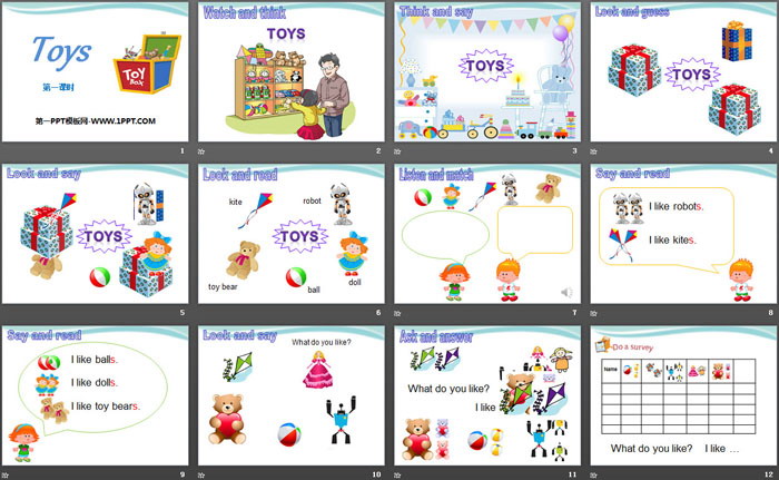 关键词:上海教育版三年级下册英语PPT课件免费下载,《Toys》PPT下载,.PPT格式;