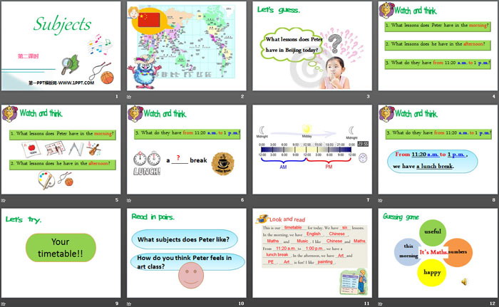 《Subjects》PPT,第二部分内容:Read in pairs.