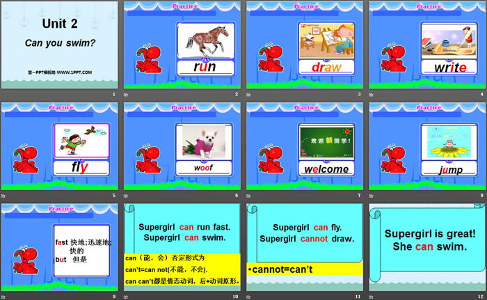 关键词:上海教育版四年级上册英语PPT课件免费下载,《Can you swim?》PPT下载,.PPT格式;