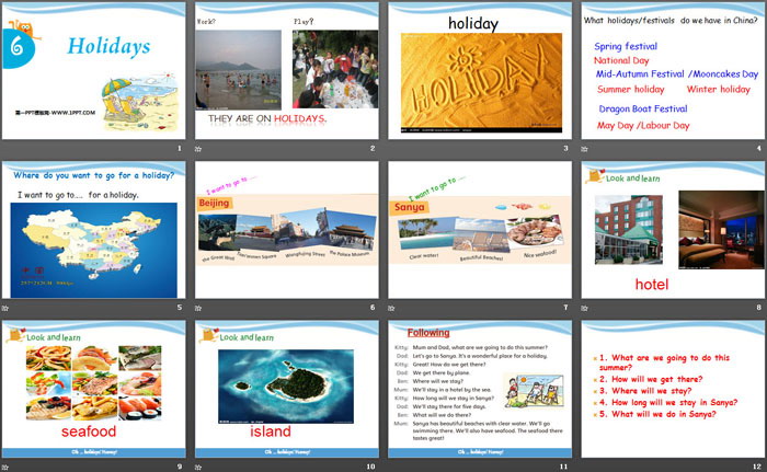 关键词:上海教育版五年级下册英语PPT课件免费下载,《Holidays》PPT下载,.PPT格式;