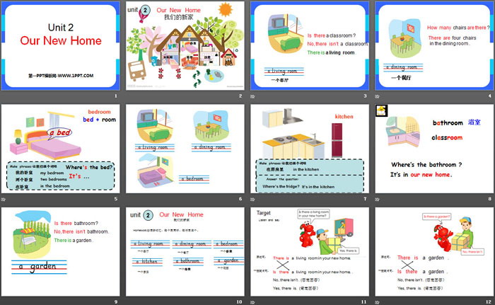 关键词:上海教育版五年级下册英语PPT课件免费下载,《Our new home》PPT下载,.PPT格式;