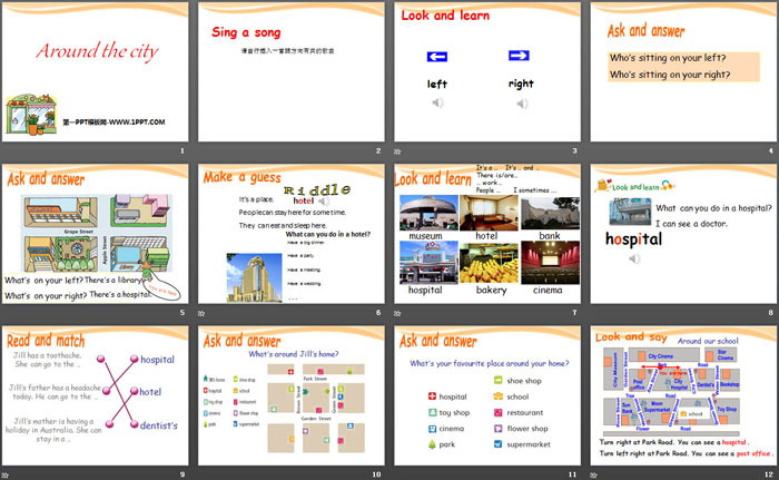 关键词:上海教育版五年级上册英语PPT课件免费下载,《Around the city》PPT下载,.PPT格式;
