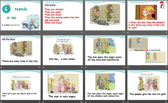 A long time ago, many mice are in the city. One day, a man comes. He can____the people.But he needs a bag of gold.
