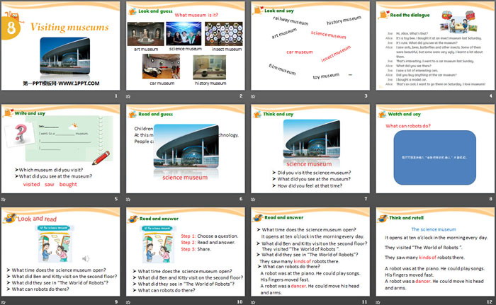 关键词:上海教育版六年级上册英语PPT课件免费下载,《Visiting museums》PPT下载,.PPT格式;