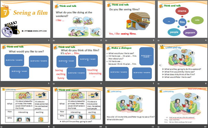 《Seeing a film》PPT,第三部分内容:Listen and say