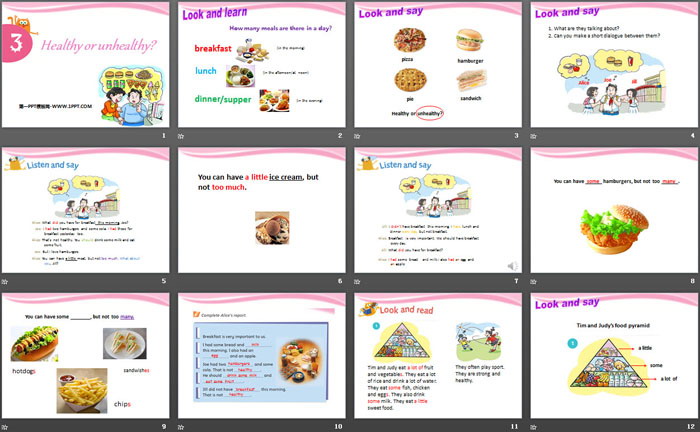 《Healthy or unhealthy》PPT,第二部分内容:Look and read