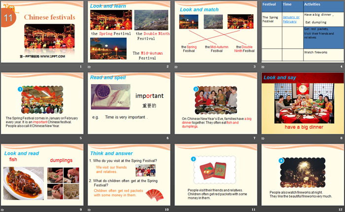 《Chinese festivals》PPT,第二部分内容:Read and learn