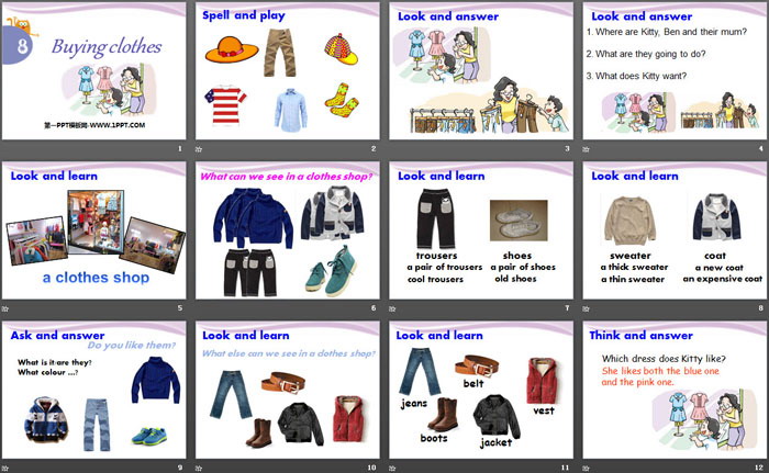 《Buying clothes》PPT,第二部分内容:Look and learn