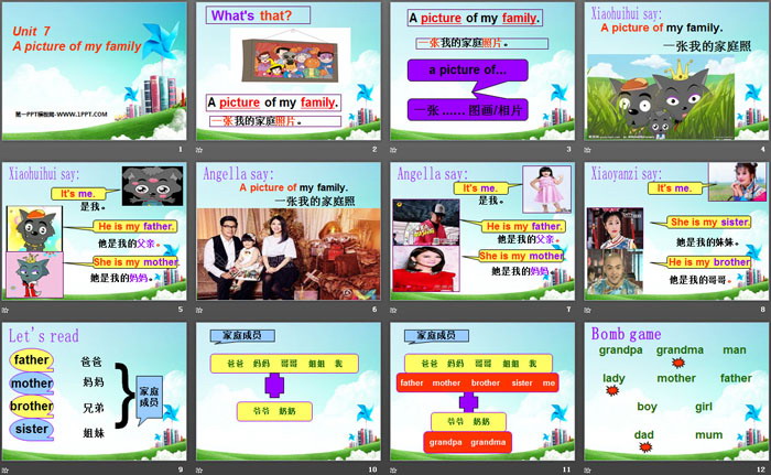 关键词:广州版三年级上册英语PPT课件免费下载,《A picture of my family》PPT下载,.PPT格式;