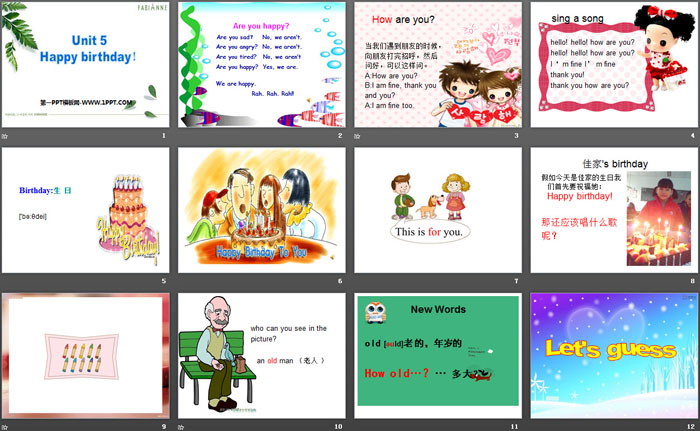 关键词:广州版三年级下册英语PPT课件免费下载,《Happy birthday!》PPT下载,.PPT格式;