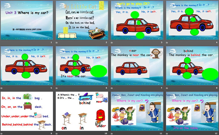 关键词:广州版三年级下册英语PPT课件免费下载,《Where's my car?》PPT下载,.PPT格式;
