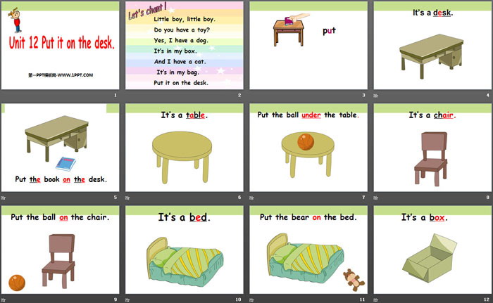 关键词:广州版三年级上册英语PPT课件免费下载,《Put in on the desk》PPT下载,.PPT格式;