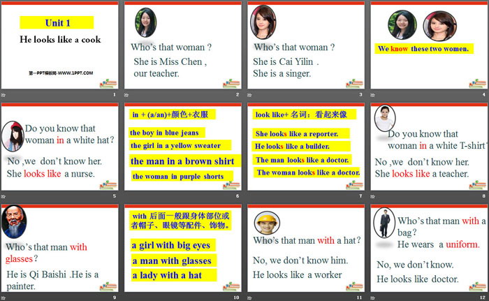 《He looks like a cook?》PPT,第二部分内容:句型学习