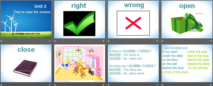 《They're near the window》PPT,第二部分内容:地点介词+限定词+名词