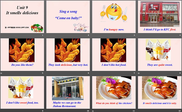 关键词:广州版五年级上册英语PPT课件免费下载,《It smells delicious》PPT下载,.PPT格式;