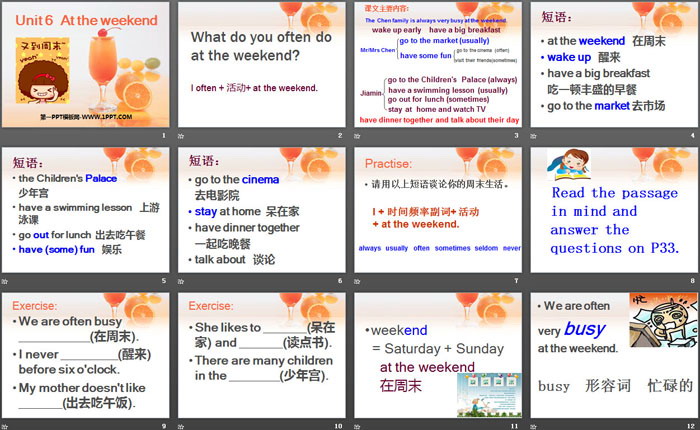 关键词:广州版五年级上册英语PPT课件免费下载,《At the weekend》PPT下载,.PPT格式;