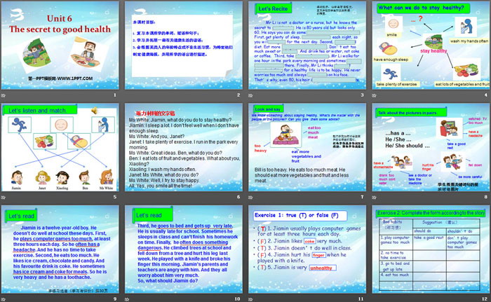 关键词:广州版六年级上册英语PPT课件免费下载,《The secret to good healty》PPT下载,.PPT格式;