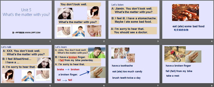 关键词:广州版六年级上册英语PPT课件免费下载,《What's the matters with you?》PPT下载,.PPT格式;