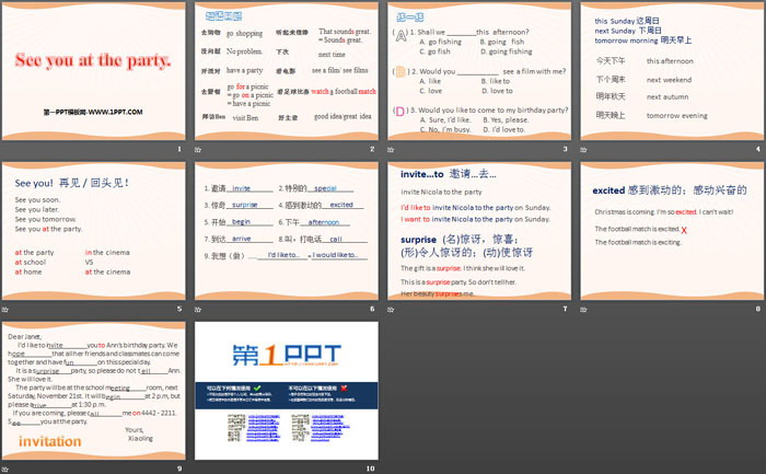 《See you at the party》PPT,第四部分内容:invitation