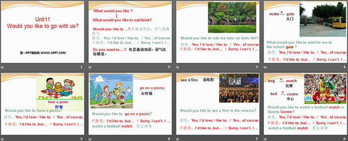 《Would you like to go with us?》PPT,第二部分内容:words and phrases