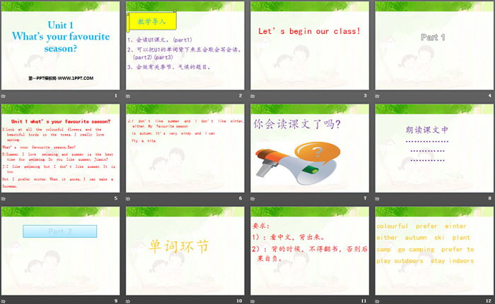 《What's your favourite season?》PPT,第二部分内容:分部学习