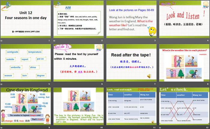 关键词:广州版五年级上册英语PPT课件免费下载,《Four seasons in one day》PPT下载,.PPT格式;