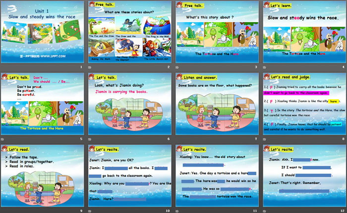 关键词:广州版六年级下册英语PPT课件免费下载,《Slow and steady wins the race》PPT下载,.PPT格式;
