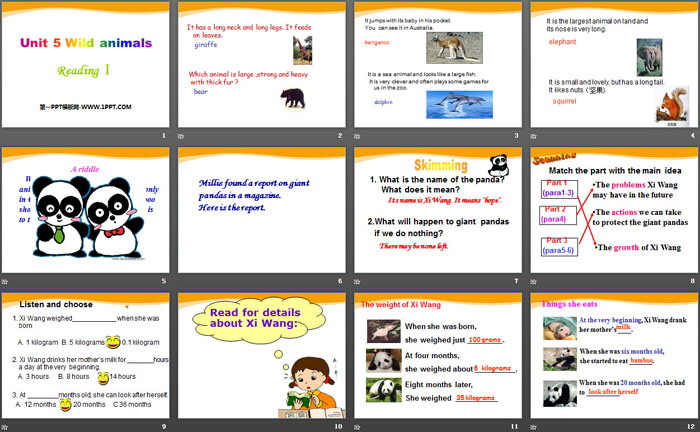 《Wild animals》PPT,第二部分内容:Skimming