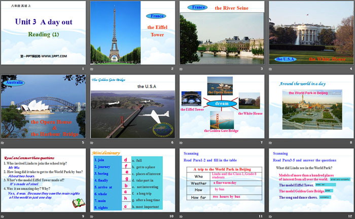 关键词:牛津译林版八年级上册英语PPT课件免费下载,《A day out》PPT下载,.PPT格式;