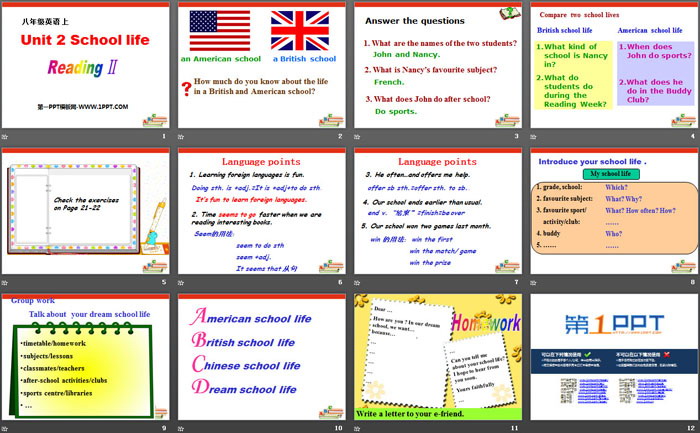 《School life》PPT,第二部分内容:Language points