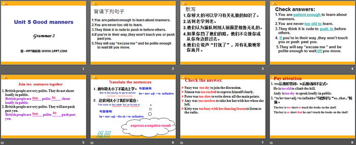 《Good manners》PPT,第二部分内容:Translate the sentences
