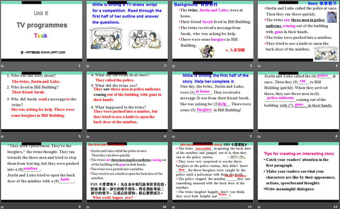 《TV programmes》PPT,第二部分内容:Millie is writing the first half of the story. Help her complete it.