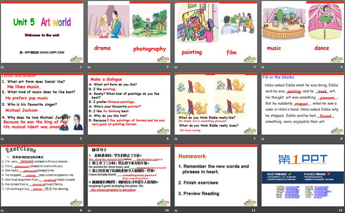 《Art world》PPT,第三部分内容:Fill in the blanks