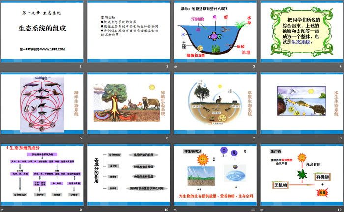 关键词:苏教版八年级上册生物PPT课件免费下载,生态系统的组成PPT下载,.PPT格式;