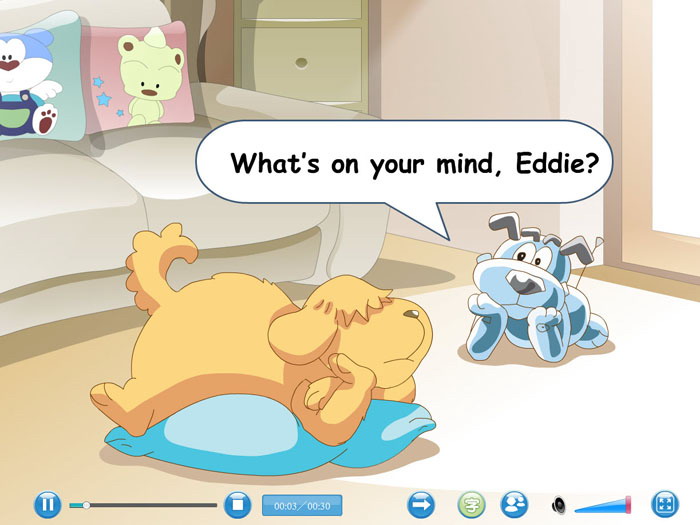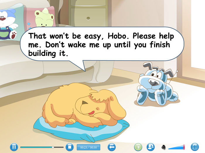 本课件为课程对话学习的Flash动画课件,适合小学英语学习。