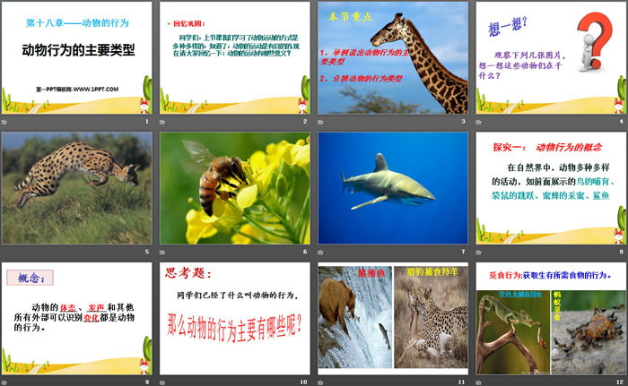 关键词:苏教版八年级上册生物PPT课件免费下载,动物行为的主要类型PPT课件,.PPT格式;