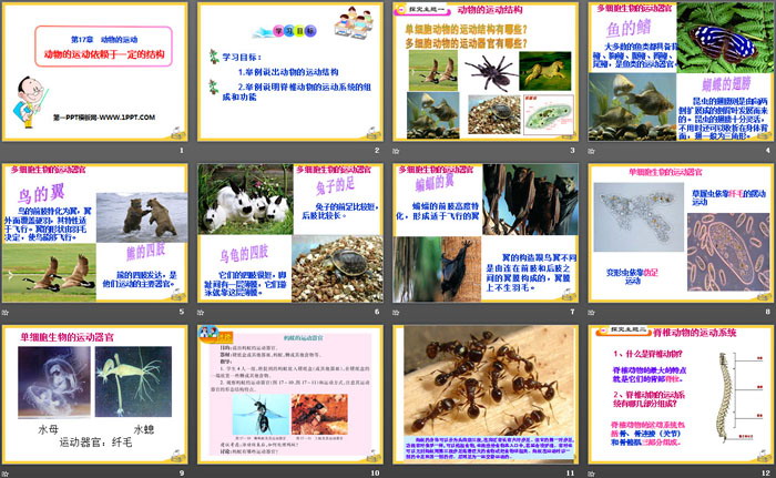 关键词:苏教版八年级上册生物PPT课件免费下载,动物的运动依赖一定的结构PPT下载,.PPT格式;