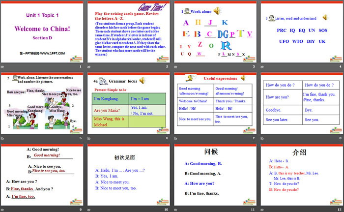 关键词:仁爱版七年级上册英语PPT课件免费下载,《Welcome to China》PPT下载,.PPT格式;