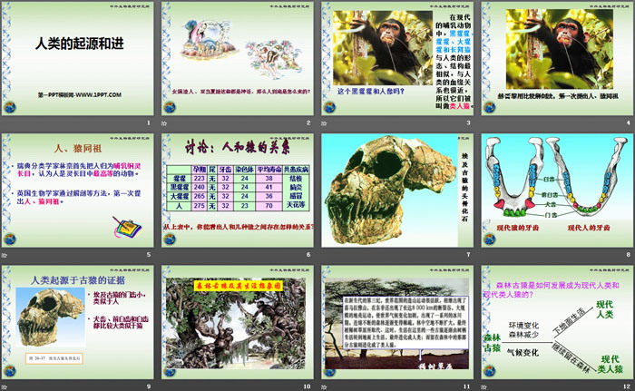 关键词:苏教版八年级上册生物PPT课件免费下载,人类的起源和进化PPT下载,.PPT格式;