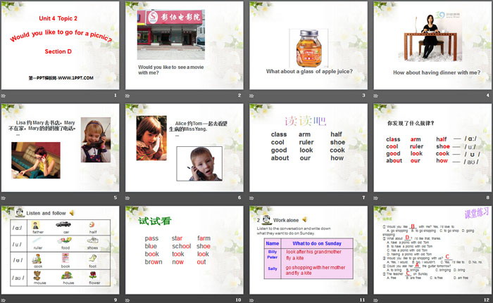 《Would you like to go for a picnic?》PPT,第三部分内容:课堂练习